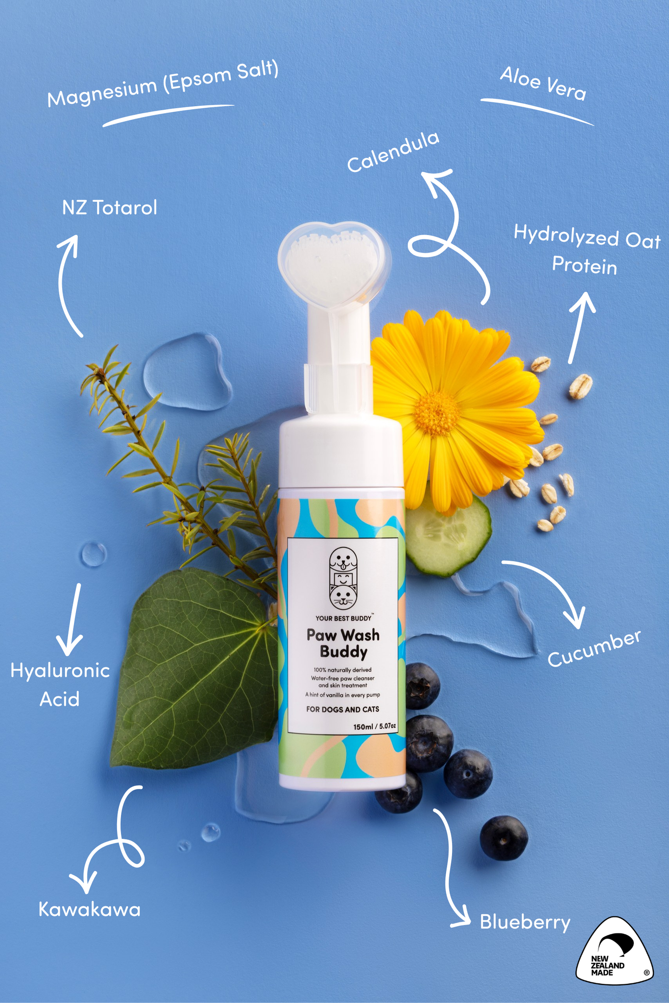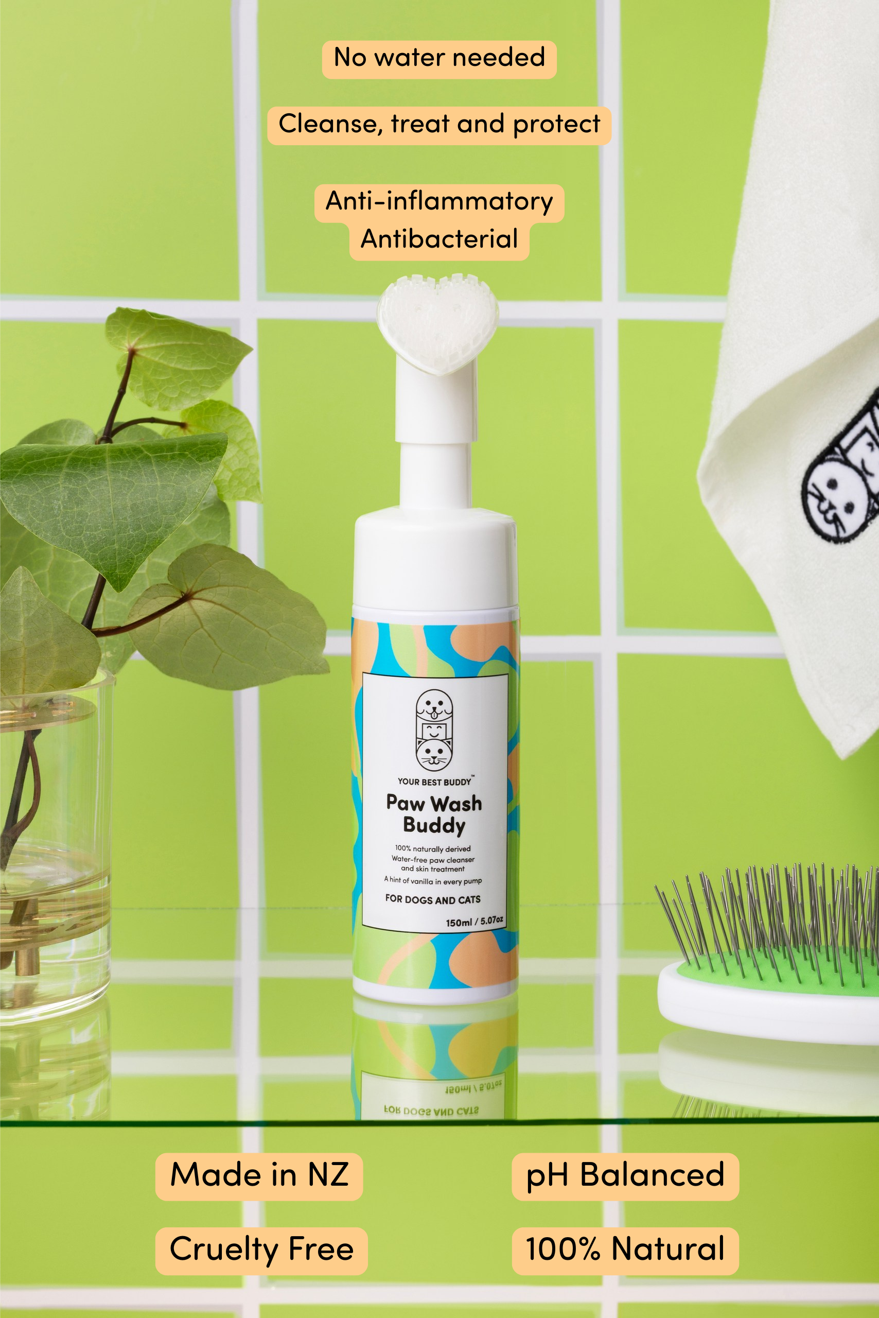We've done it - our first formula, made right here in New Zealand! Paw Wash Buddy is specially made for, you guessed it, paws! Designed with 100% natural plant-based ingredients and made for a gentle and nourishing fast clean on the go or at home, this multifunctional water-free cleanser and skin treatment will be your new go to for your buddy. Our no rinse formula, transforms from liquid to foam (with every pump of our super handy packaging) to clean, treat, hydrate and protect your buddy's skin barrier. After all, if we had to walk everywhere on our bare feet, you'd think we'd give them some extra love, right?